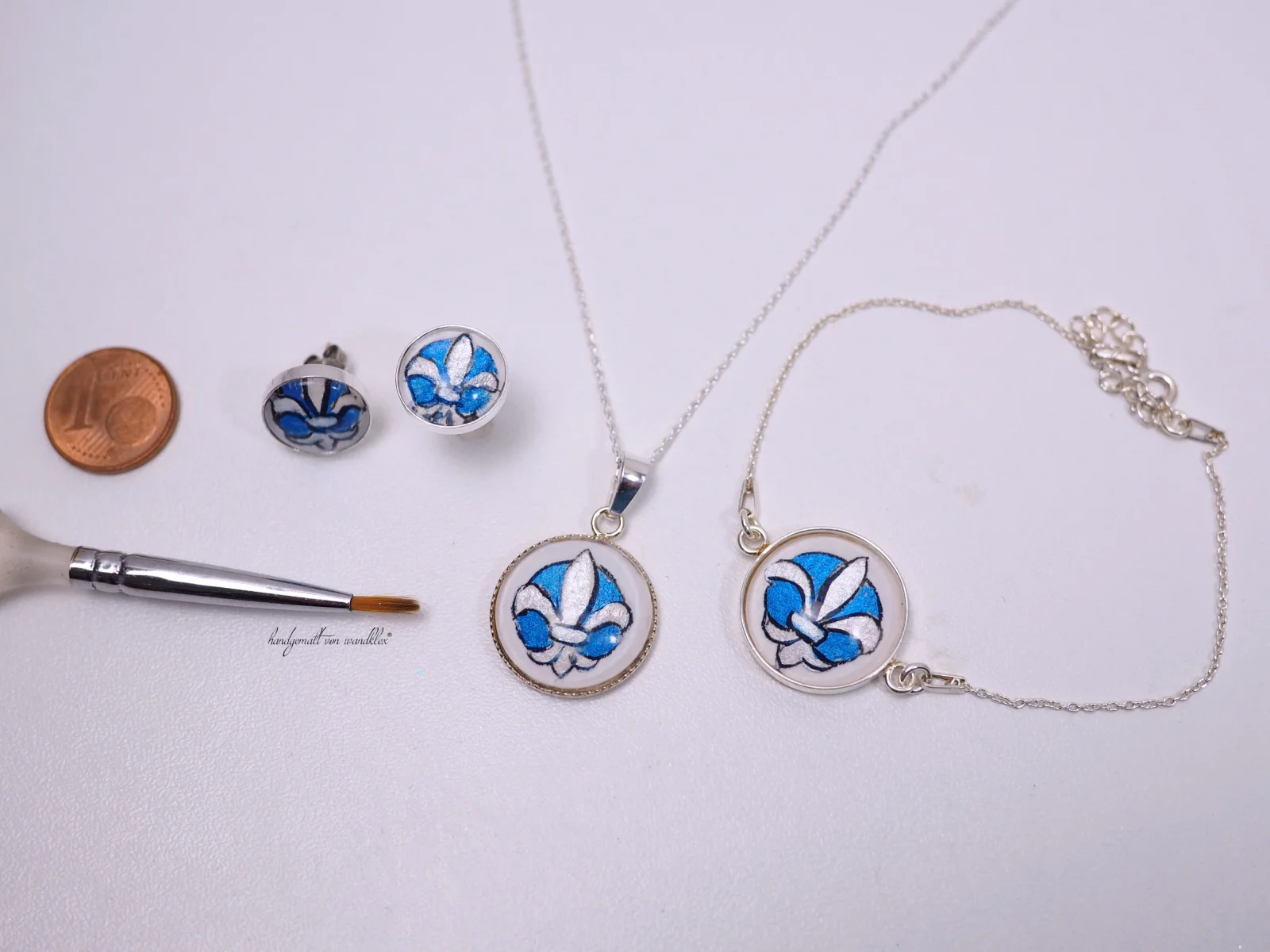 (handgemalter #wandklexschmuck, in echt 925 Sterling Silber gefasst. Zu finden auf https://www.wandklex.art/product/6-12-fleur-de-lys-silber-azur-echt-925-sterling-silber-handgemalt-618582.)