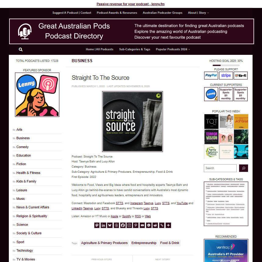 Great Australian Pods Podcast Directory: https://www.greataustralianpods.com/straight-to-the-source/