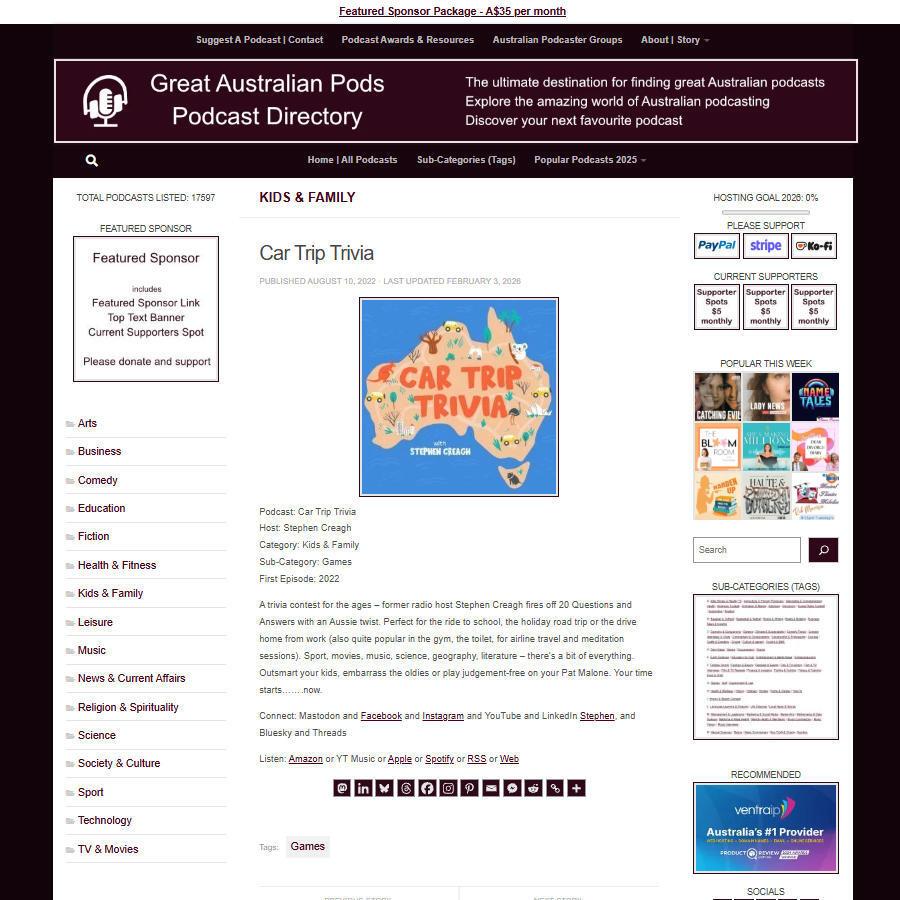 Great Australian Pods Podcast Directory: https://www.greataustralianpods.com/car-trip-trivia/