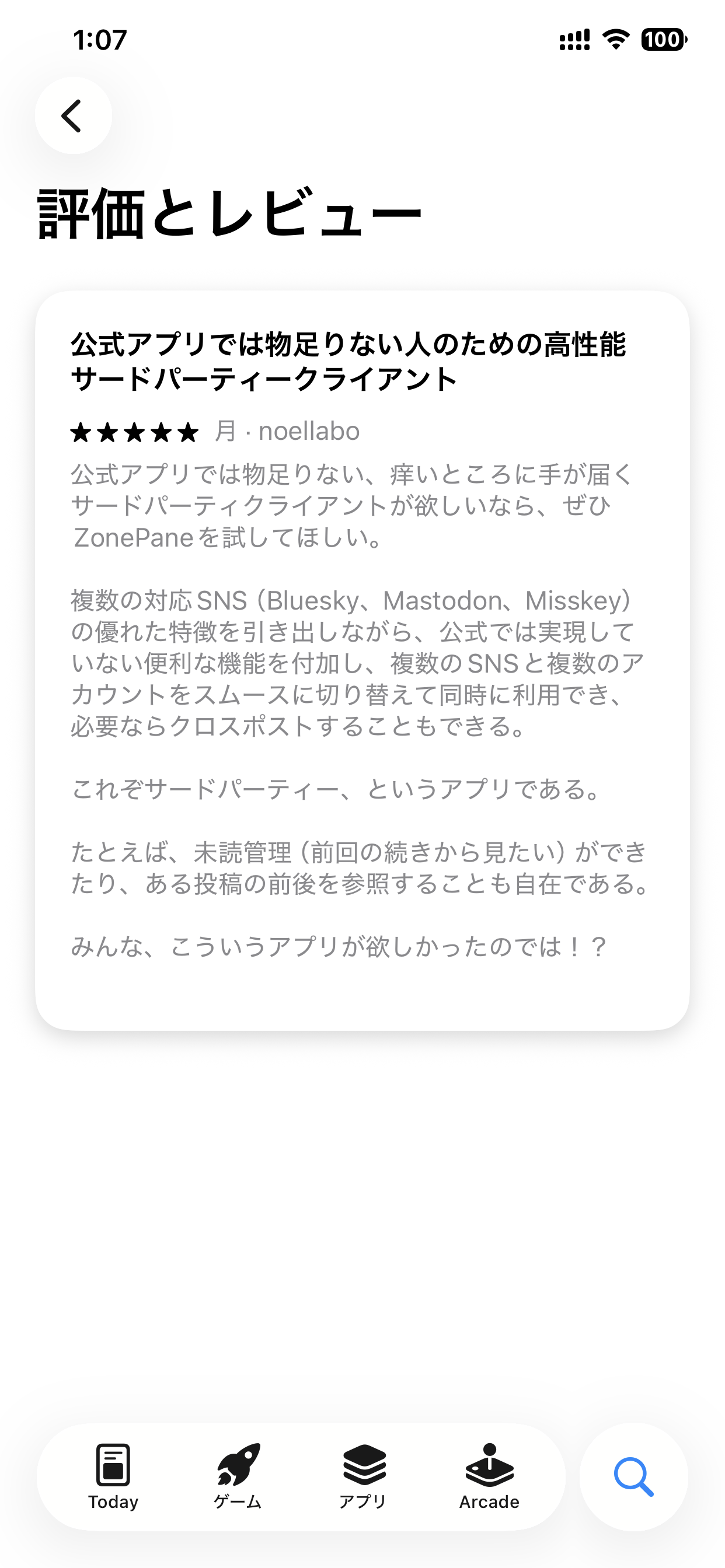 公式アプリでは物足りない、痒いところに手が届くサードパーティクライアントが欲しいなら、ぜひZonePaneを試してほしい。