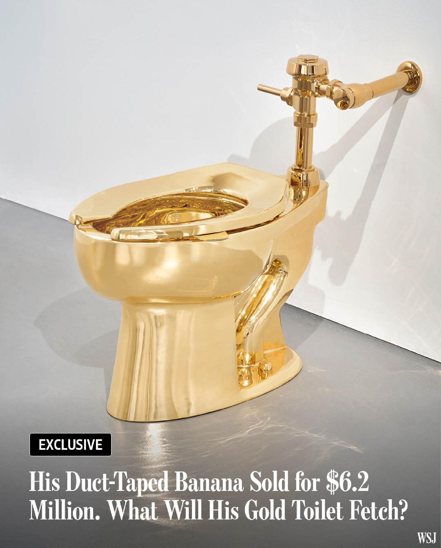The 'duct-tape banana' artist created an 18-karat gold toilet to be auctioned by Sotheby’s. In other news, this is the President's bathroom.on.wsj.com/43amKUp#trump #goldtoilet