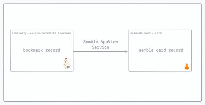 1) Lexicon mapping: @kipclip.com using community bookmarks lexicon, mapping to a Semble card.