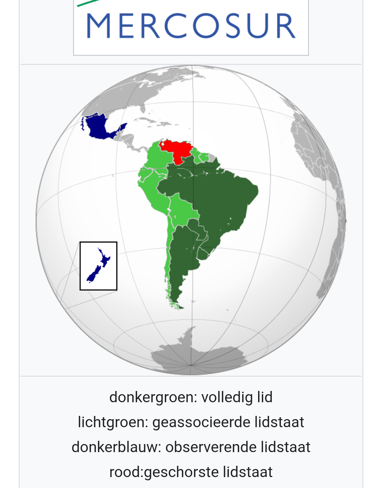 Even voor alle duidelijkheid alle landen met hun status binnen Mercosur.