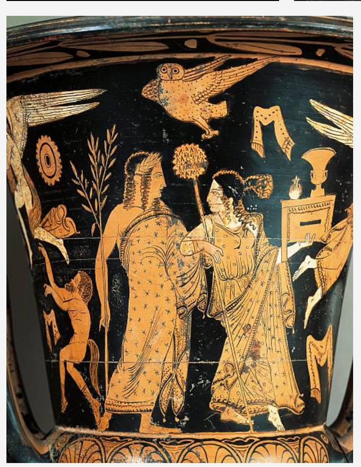 🏛 Dionysos and Ariadne crowned, Etruscan Red-figure pottery, 4th century BCE, Krater from Civita Castellana, ancient Falerii, Rome province, Italy