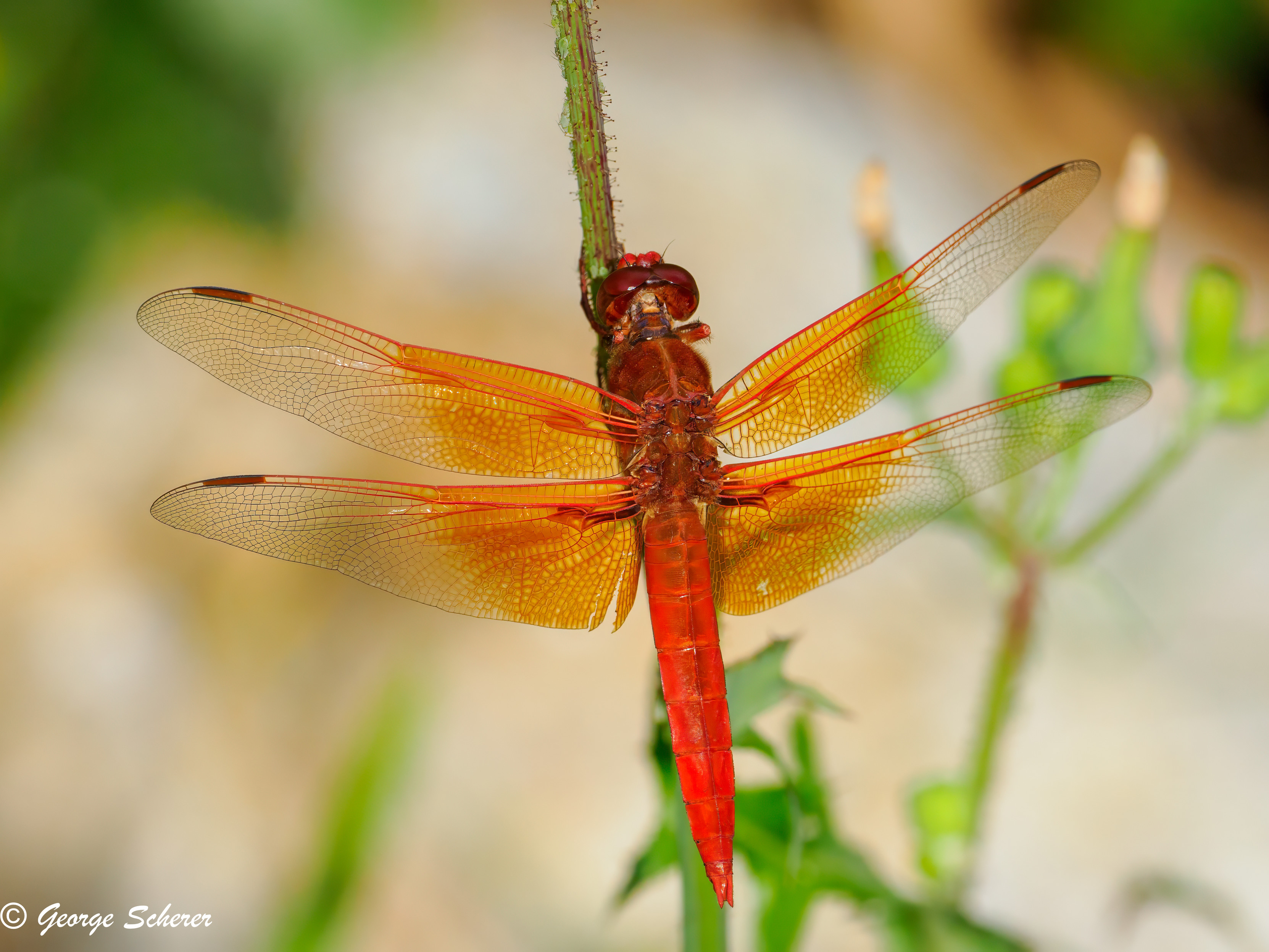 Flame Skimmer dragonfly resting on a green branch. LA Arboretum, Arcadia, California, USA. #laarboretum #dragonfly #flameskimmer