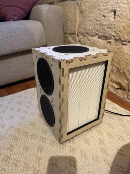 But here is a mini Corsi-Rosenthal like air filter with 2 F8 / MERV14 filters.