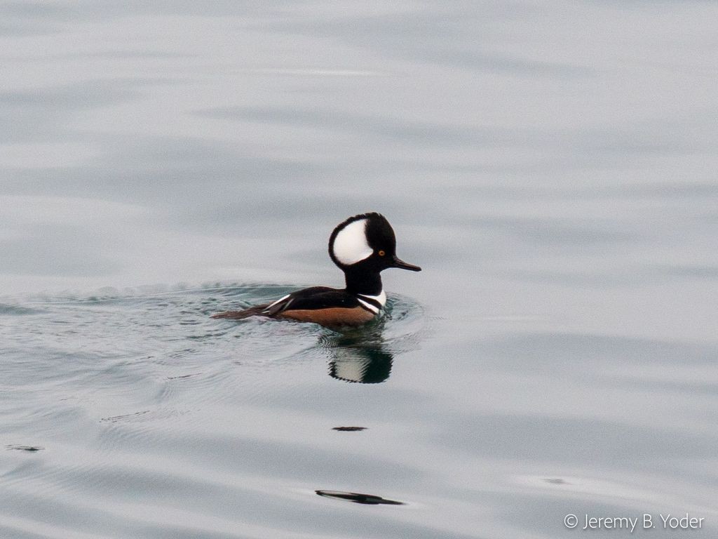 Hooded merganser, Lophodytes cucullatus, on the water at Friday Harbor, San Juan Island