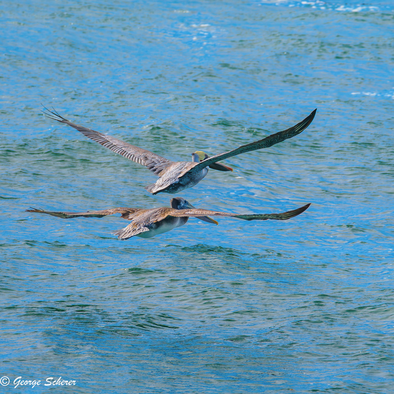 Brown Pelicans flying in formation over the water. Elephant Seal Vista Point, San Simeon, California, USA. October, 2025. OM System OM-1 M.Zuiko 300mm F4 MC14. #moonstonebeach #pelican #bird