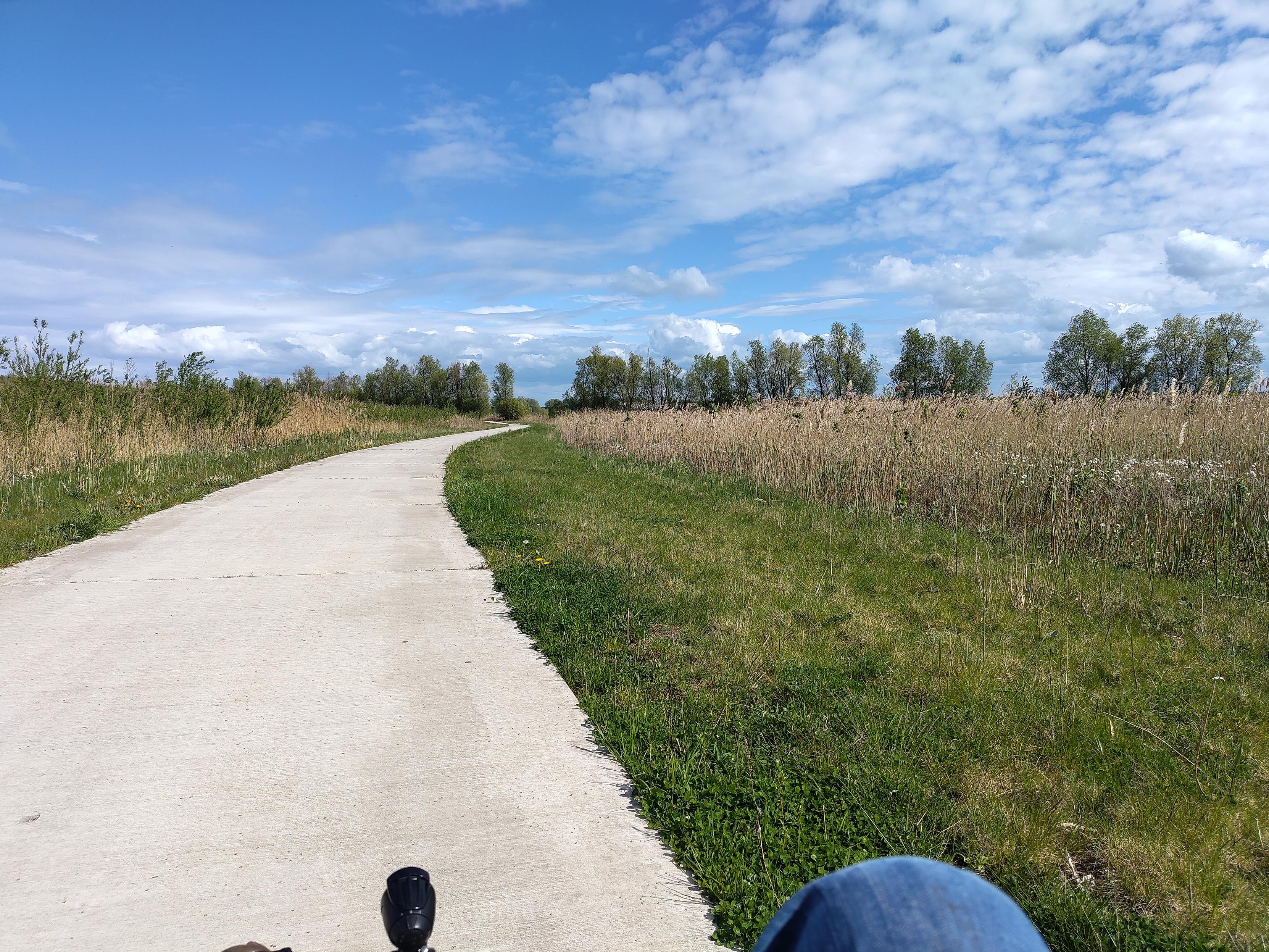 Ik voerde de #trike door de Almeerse tuinbouw-, waar ook een flinke sleurhuttenkwekerij is gevestigd, en moerasgebieden. Het koolzaad bloeit. Het was een vergelijkbaar rondje met dat ik vrijdag afbrak, maar nu wel de volle geplande lengte en zonder plotse riool geluiden bij het ademen. Veel wind, heerlijk weer. #regel17