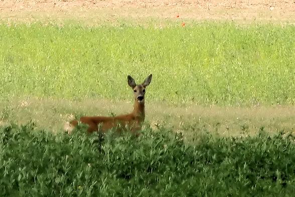 Ab und an – insbesondere wenn ich sehr früh auf eine #Wanderung gehe – kann ich am #Waldrand und auf Feldern noch #Rehe beobachten.