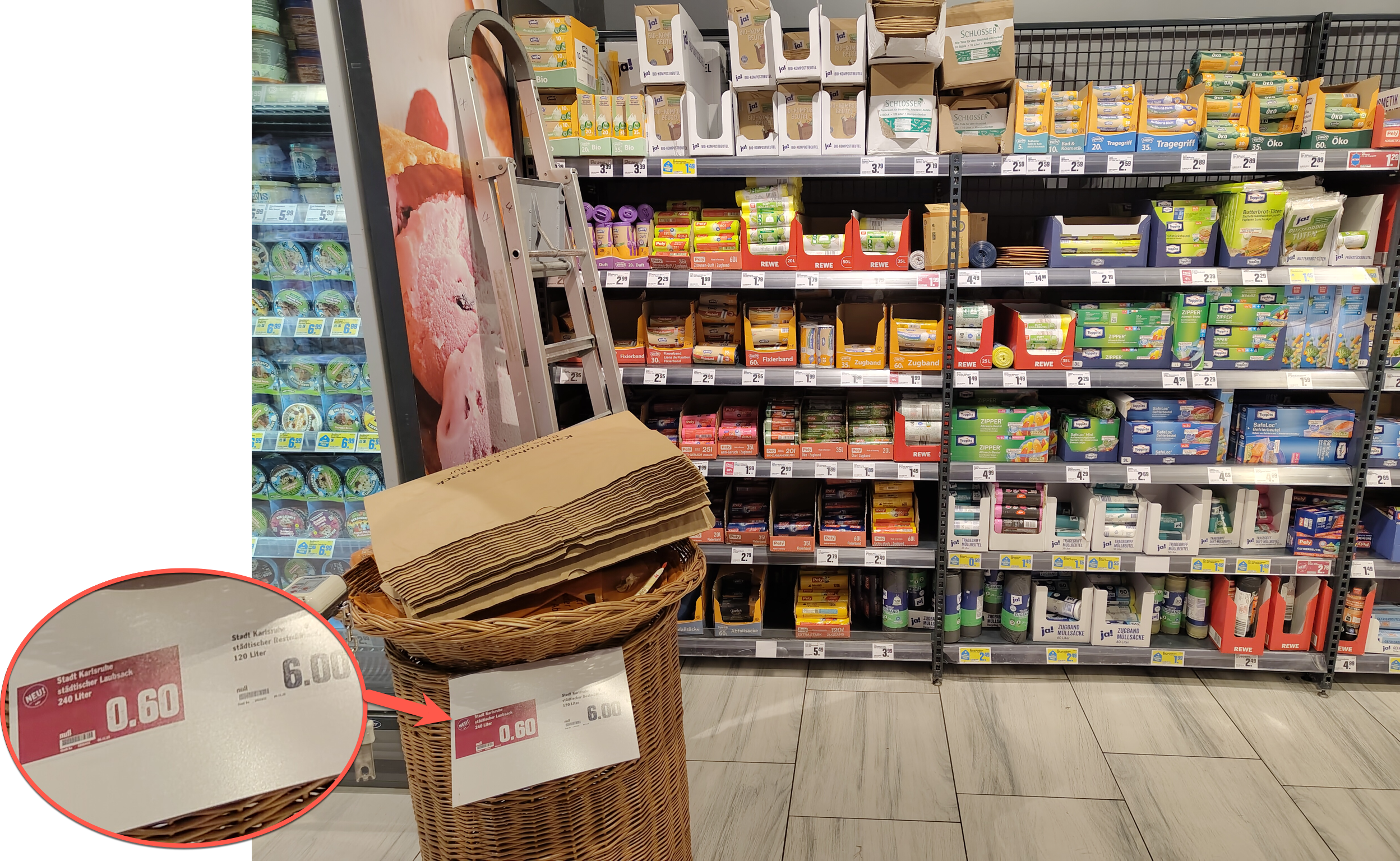 Mela vor dem Regal Mülltüten: "Meh, haben die etwa keine Karlsruher Restmülltüten mehr? Sind die aus? Haben sie die aus dem Programm genommen? Muss ich jetzt wirklich zum Restmüllhof rausradeln um mir welche zu besorgen? Warum ist das Universum immer gegen mich?"