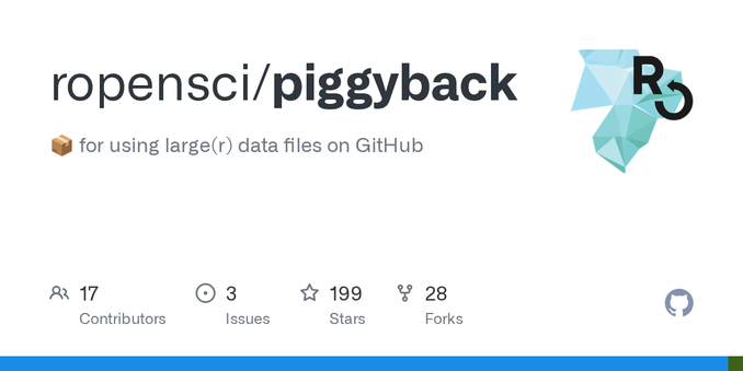 {piggyback} makes it easier to attach large files (e.g. input data) to code in github repos: #rstats