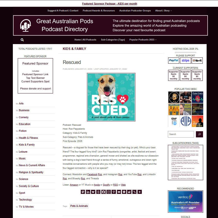Join Roz Pappalardo (songwriter, artist, festival and event programmer, regional arts champion, general mover and shaker) as she explores our obsession with being a dog's best friend through a series of funny, emotional, outrageous and down right incredible conversations with people who you may (or may not) know...