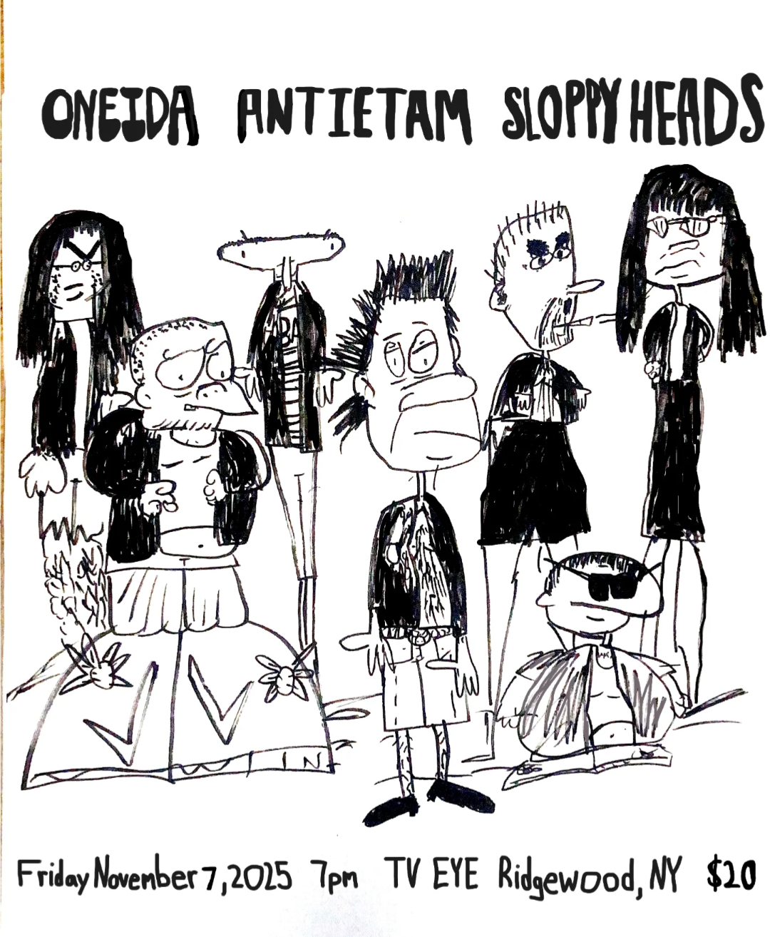 friday, 11/7, the sloppy heads join heavy heroes oneida & antietam at tv eye in ridgewood (celebrating the birthday of our big brah kid millions)! #nyc
