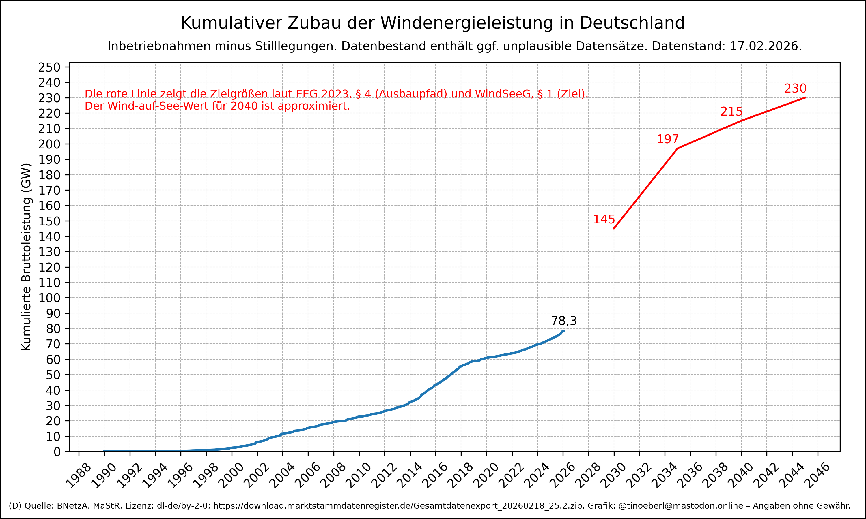 Kumulativer Zubau der #Windenergieleistung in #Deutschland mit Stand vom 17.02.2026.