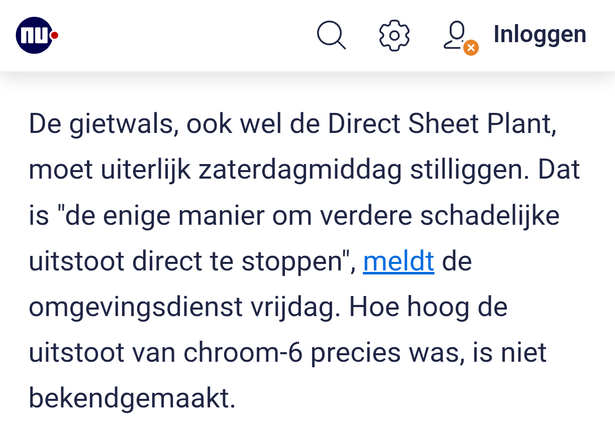 Van de omgevingdienst moest de gietwalsinstallatie voor zaterdag stilgelegd worden. Dat is even iets anders dan een bedrijf dat zoiets 'vrijwillig' doet.