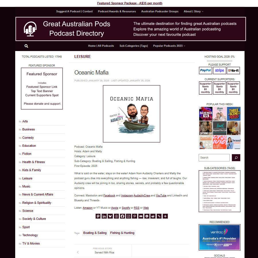 Great Australian Pods Podcast Directory: https://www.greataustralianpods.com/oceanic-mafia/