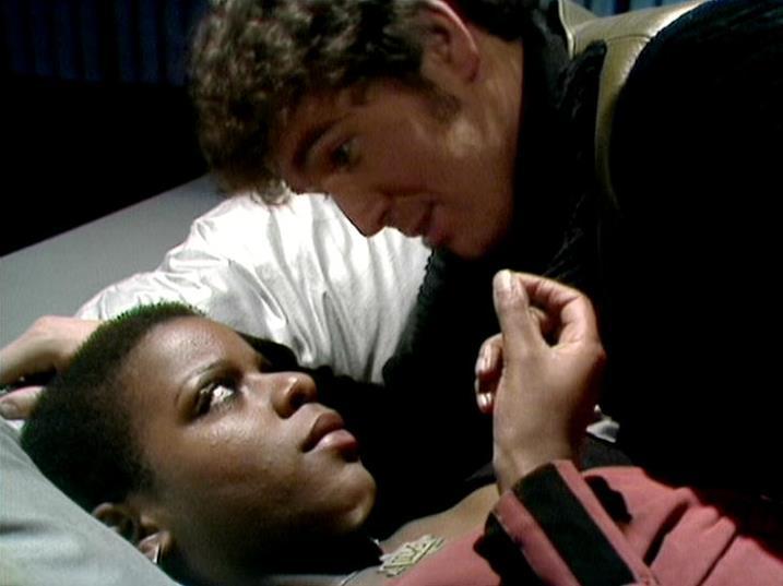[INTERIOR. Ultraworld confinement cell. Dayna removes a small object from her mouth.]