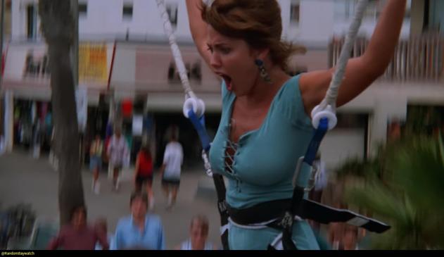 @randombaywatch@mastodon.social#DonnaDErrico always claims to be unable to swim and terrified of water, but she filmed several scenes like this in her years in the Baywatch Universe.