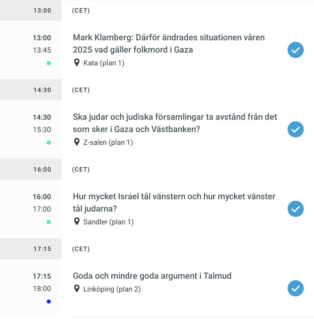 Dagens schema på #limmudstockholm. Tyvärr nästan bara politik men vad gör man