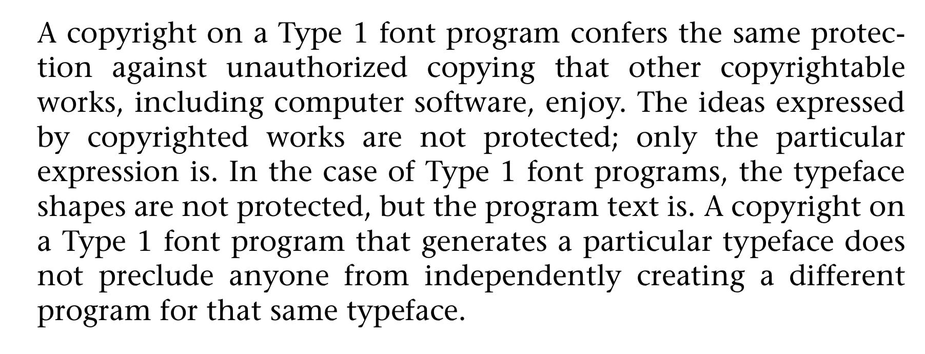 a Type 1 font program that generates a particular typeface does not preclude anyone from independently creating a different program for that same typeface."