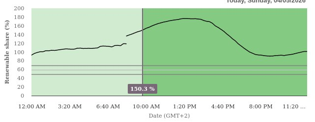 Heute werden dauerhaft >90% der Last in DE durch Erneuerbare gedeckt. Bis ~19:00 bekommt man (an der Strombörse) Geld, wenn man Strom "verbraucht".