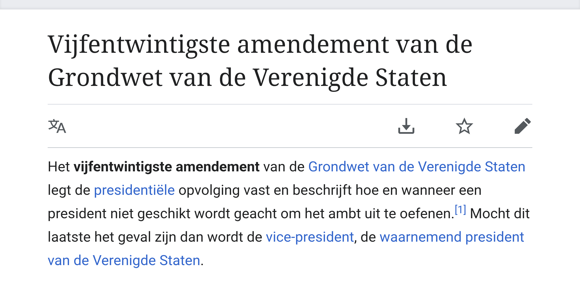 Vanaf gisteren steeds meer berichten over dat 25e amendement. Ik heb dus maar even op internet opgezocht waar dat precies over gaat ... 😉