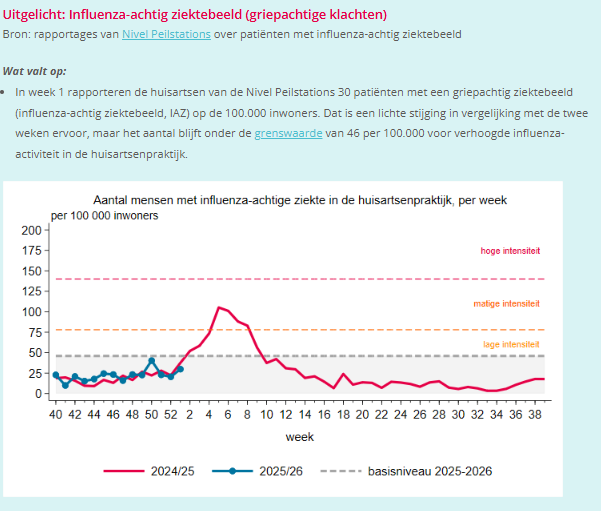 We zitten in ieder geval nog ruim onder de epidemische grens. De griepepidemie lijkt vooralsnog niet eerder te beginnen dan vorig jaar.