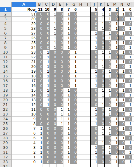 Counting from 0 to 31 in 12 bits.