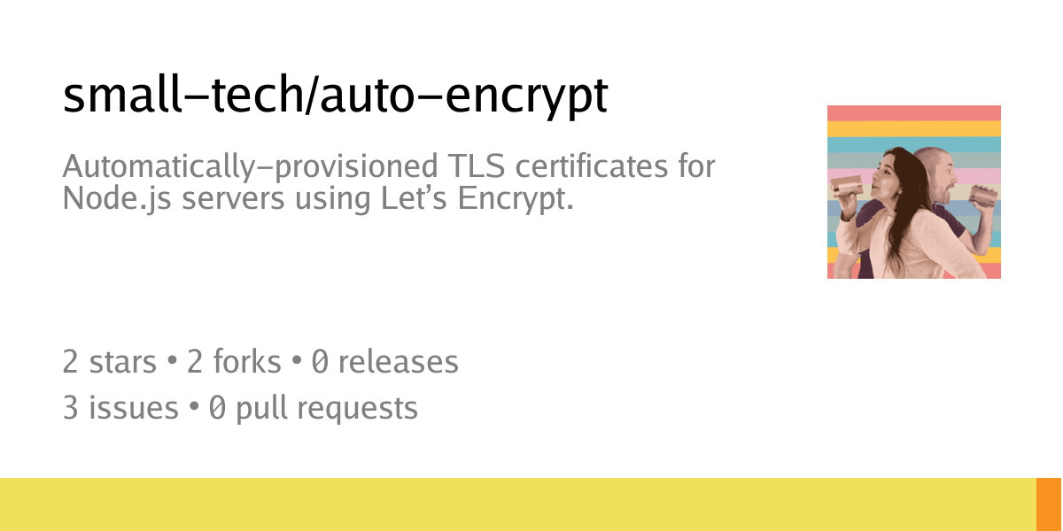 • @small-tech/auto-encrypt v5.0.0 (https://codeberg.org/small-tech/auto-encrypt#readme)