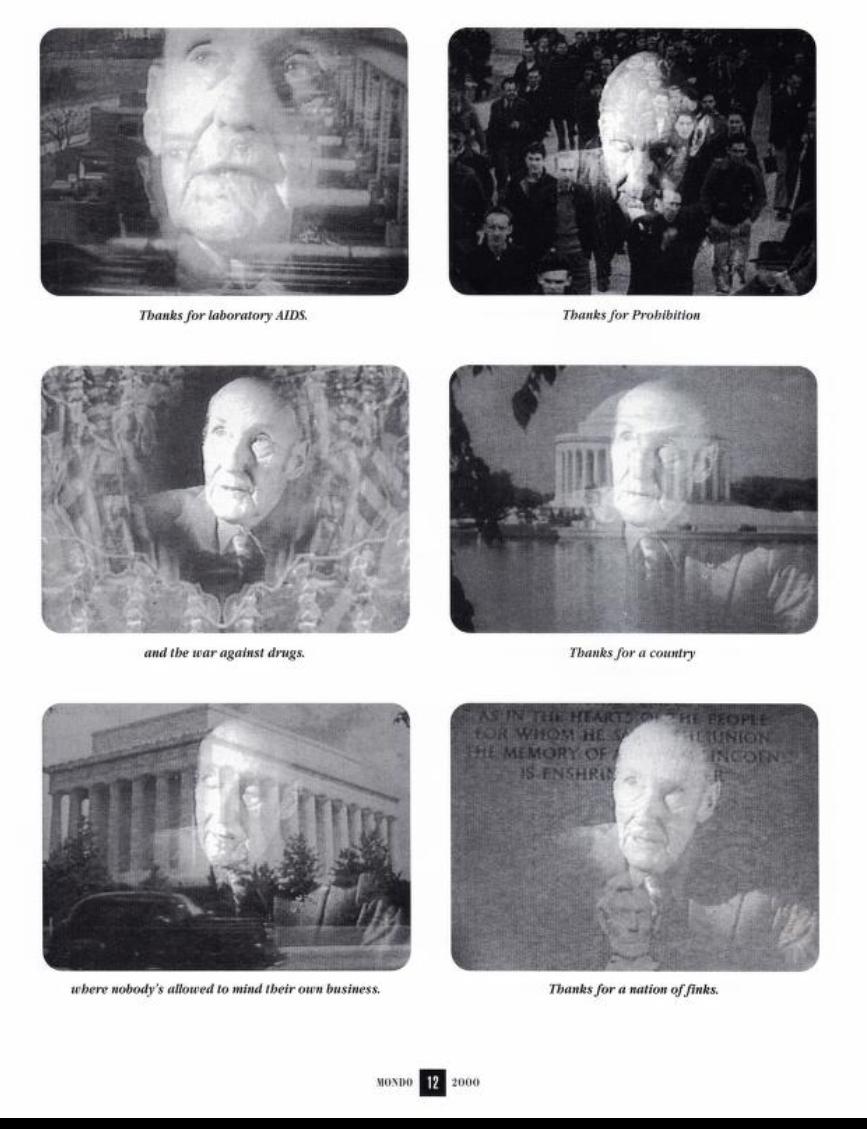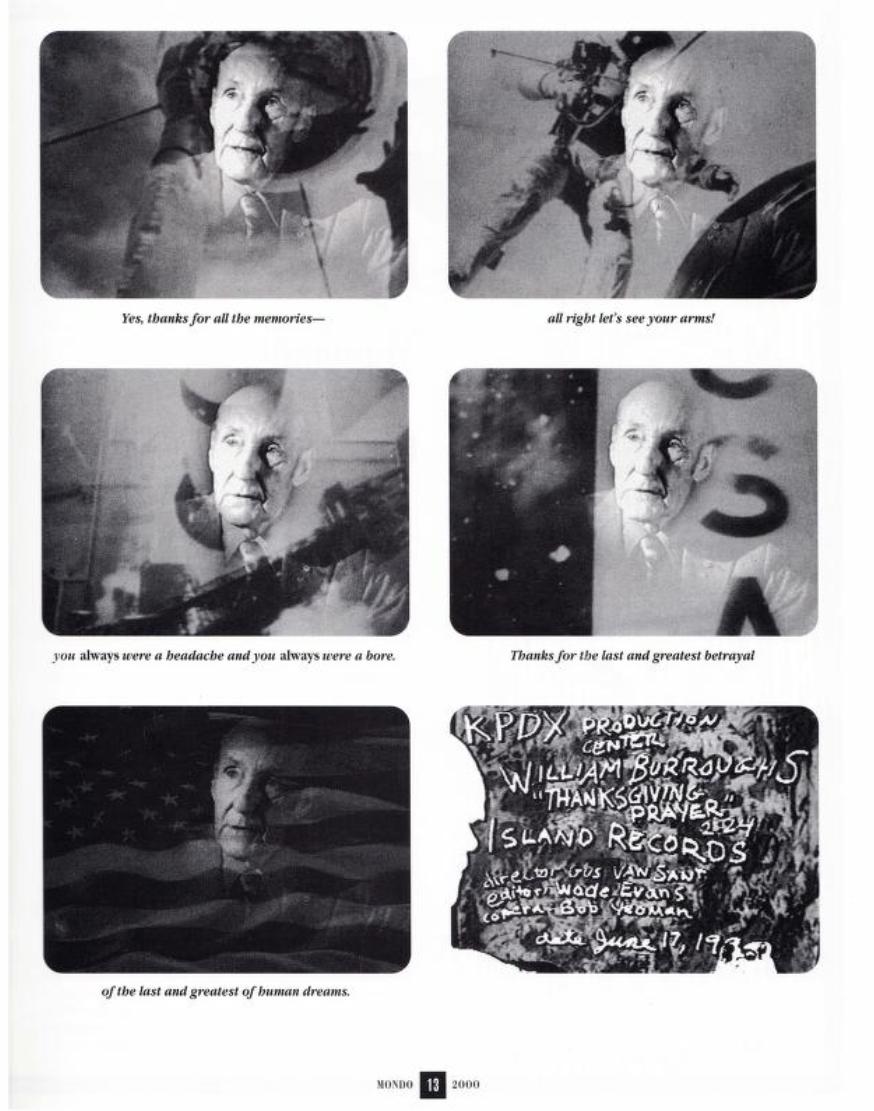 william burroughs's "a thanksgiving prayer" (1986), as rendered in mondo 2000 #3. https://archive.org/details/Mondo.2000.Issue.03.1991/page/n9/mode/2up
