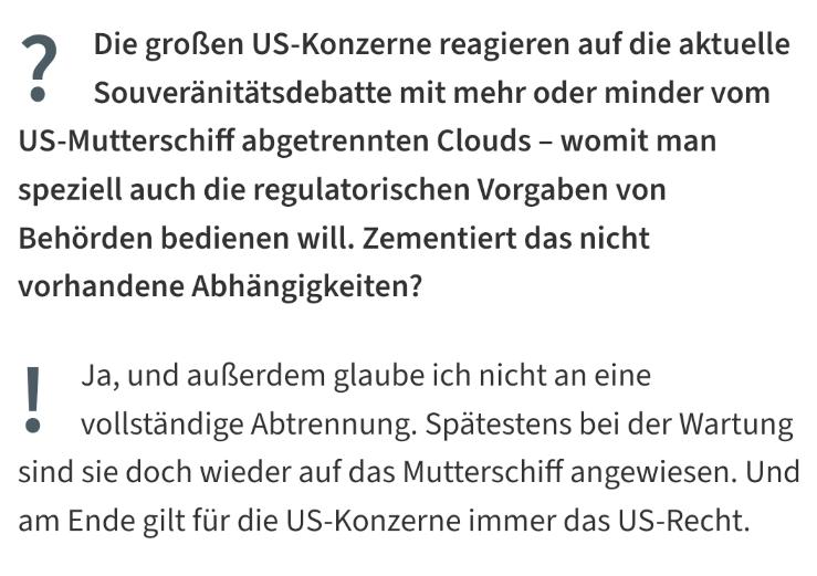 Nicht nur CDU und Grüne halten US-Clouds für keine gute Idee, aber vielleicht kennen die beim Handelsblatt sonst niemanden. Vermittle gern Kontakte.