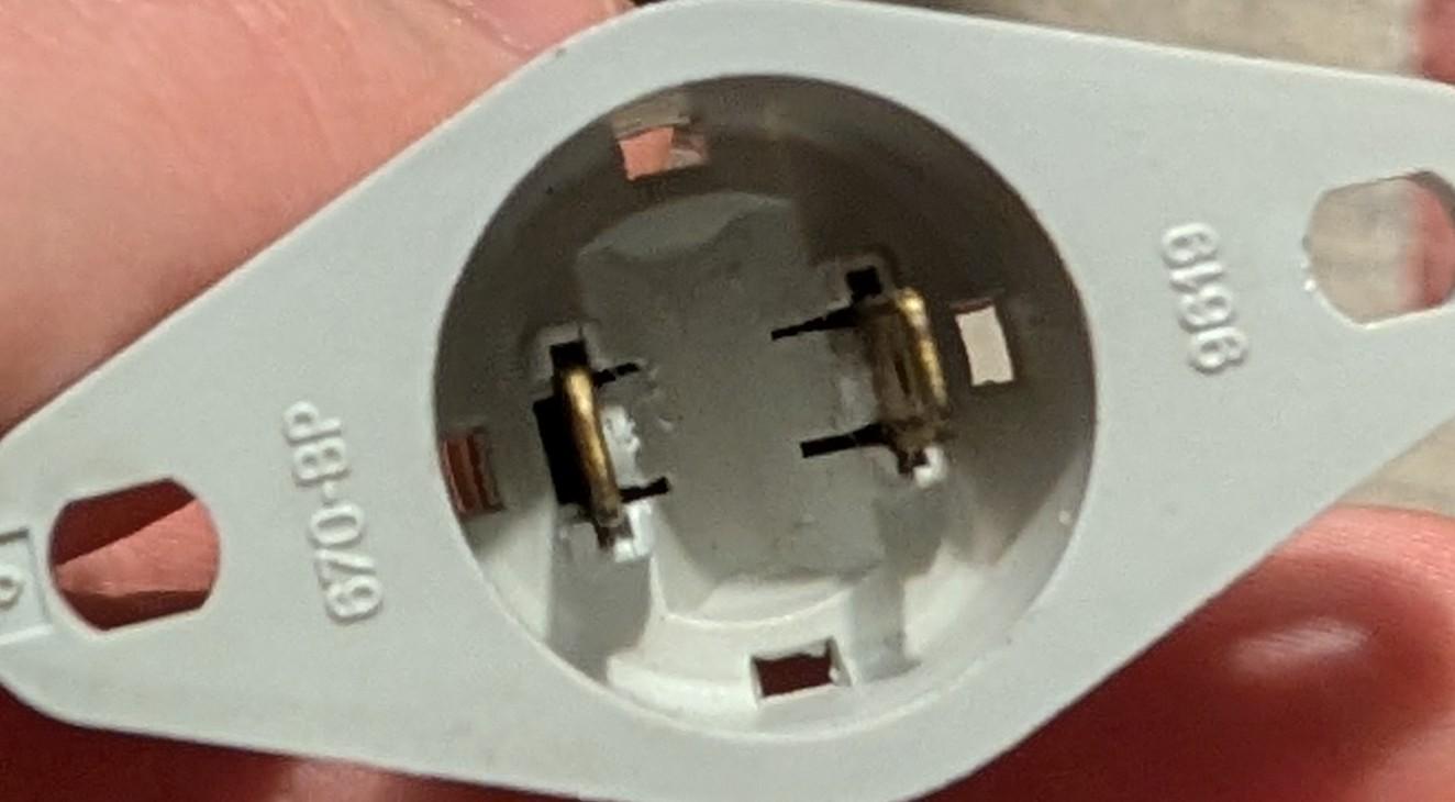 ![Częściowo uszkodzona instrukcja, namalowana na ścianie obok otworu drzwiowego. Część ściany po prawej stronie otworu została odłupana, uszkadzając napis. U góry został przerwany również, kiedy ze ściany wyrywano przewody.
