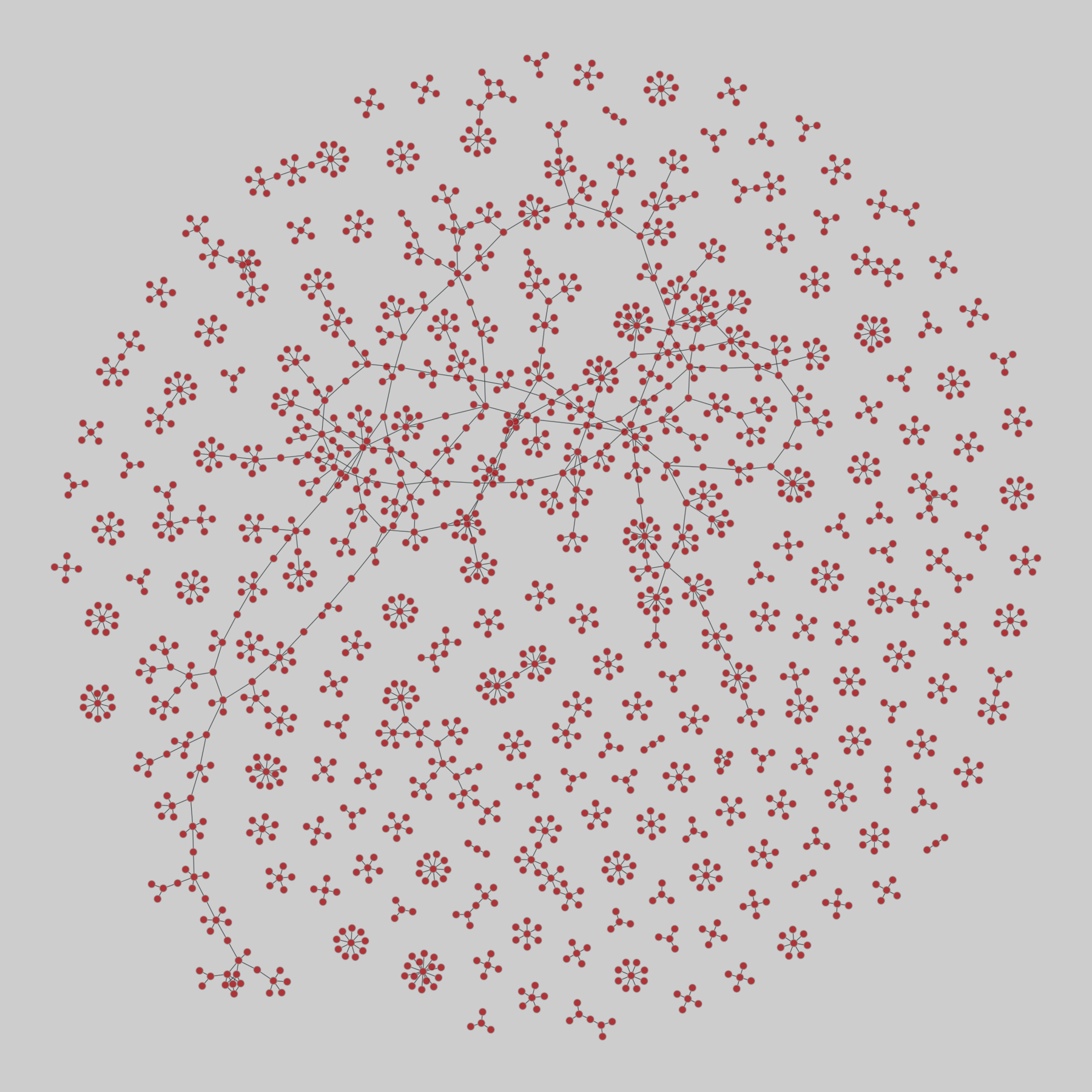 A sequence of 9 snapshots of the Gnutella peer-to-peer file sharing network from 5-31 August 2002. Nodes are hosts in the Gnutella network topology and edges are connections between them.
