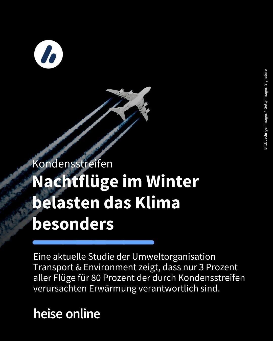 Ein Viertel der klimaaktiven #Kondensstreifen in Europa entsteht durch #Nachtflüge im #Winter.