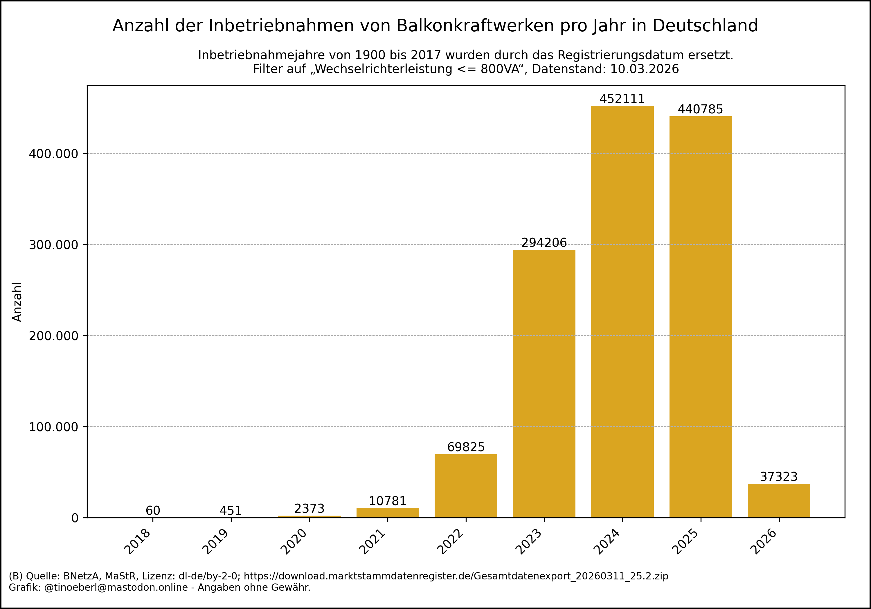 Anzahl der Inbetriebnahmen von Balkonkraftwerken pro Jahr in #Deutschland mit Stand vom 10.03.2026.