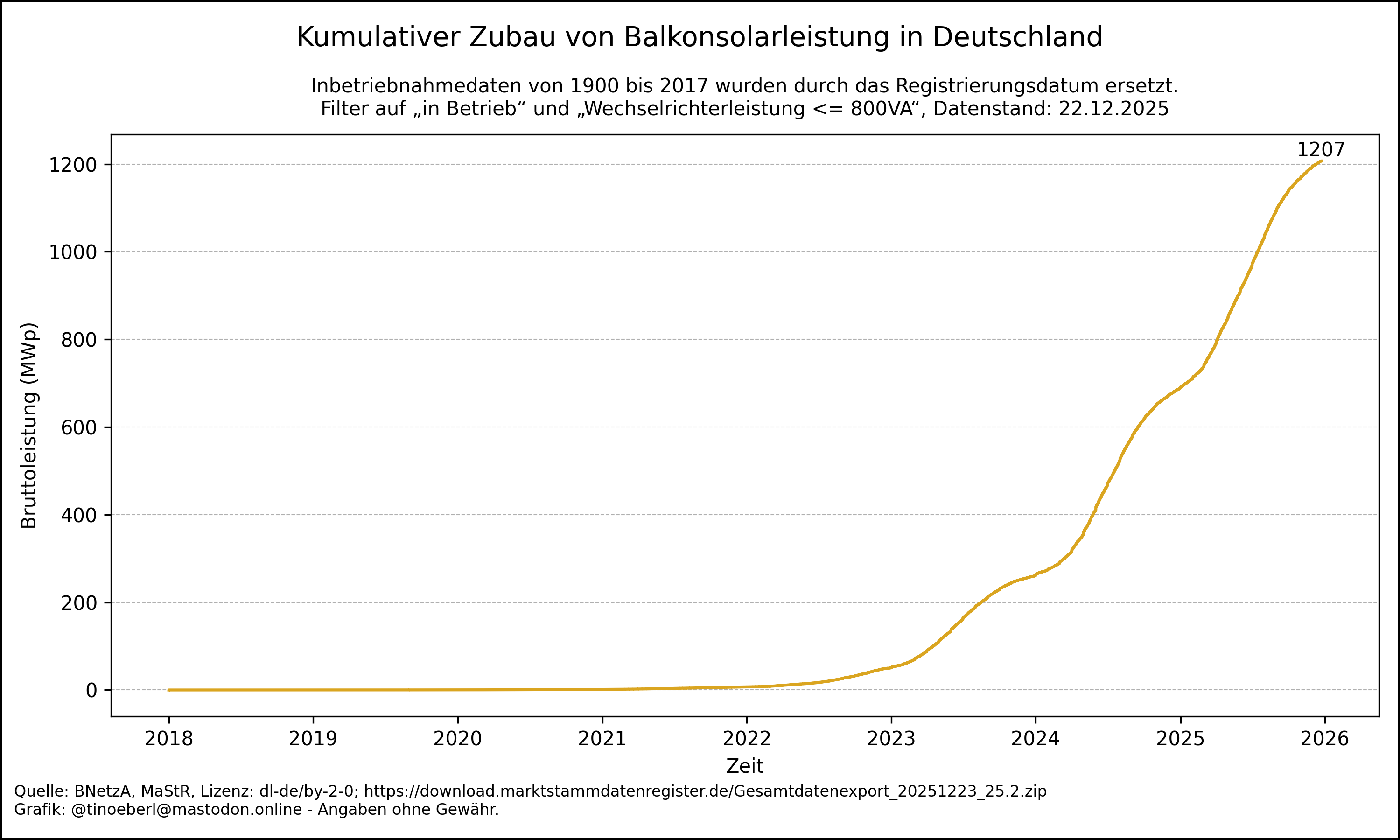 Anzahl der Inbetriebnahmen von Balkonkraftwerken pro Jahr in #Deutschland mit Stand vom 22.12.2025.