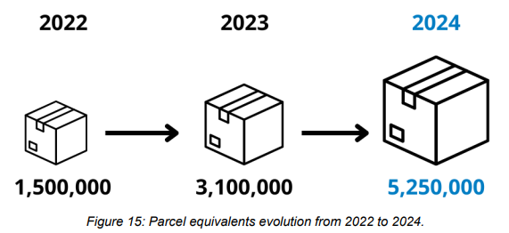 - plus de 5 millions de colis livrés Š vélo en Belgique, soit 70 % de plus qu’en 2023