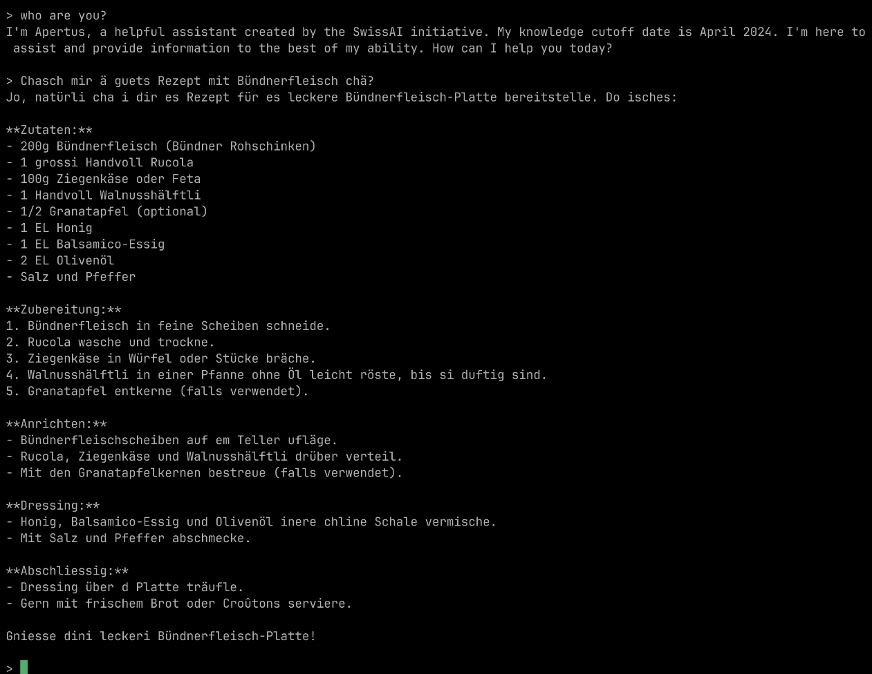 Got the 🇨🇭 #SwissAI #Apertus model - one of the very few completely opensource LLMs - running locally!