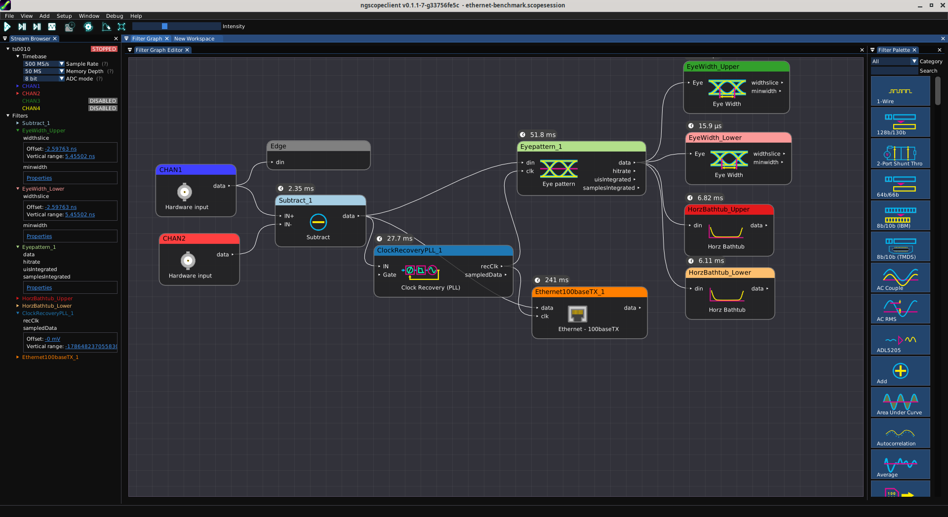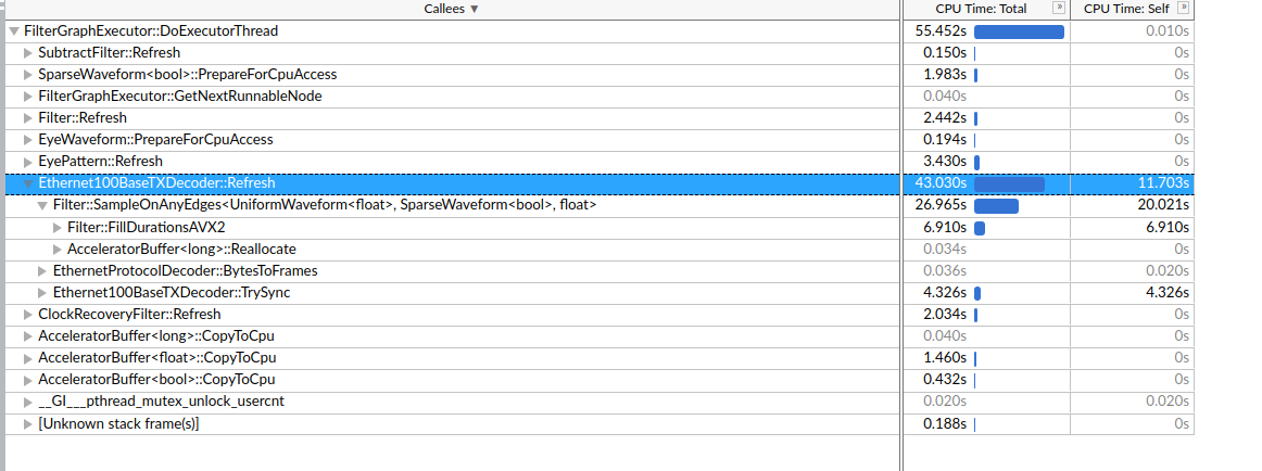 The peak at T=0 in the jitter histogram is related to use of the GPU CDR block and doesn't show up in the CPU implementation. It's likely caused by transients of some sort at thread block boundaries and I need to spend more time chasing it, I wouldn'…