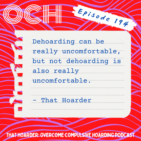 Dehoarding can be really uncomfortable, but not dehoarding is also really uncomfortable. https://www.overcomecompulsivehoarding.co.uk/podcast-ep-194-transformation-and-comfort/