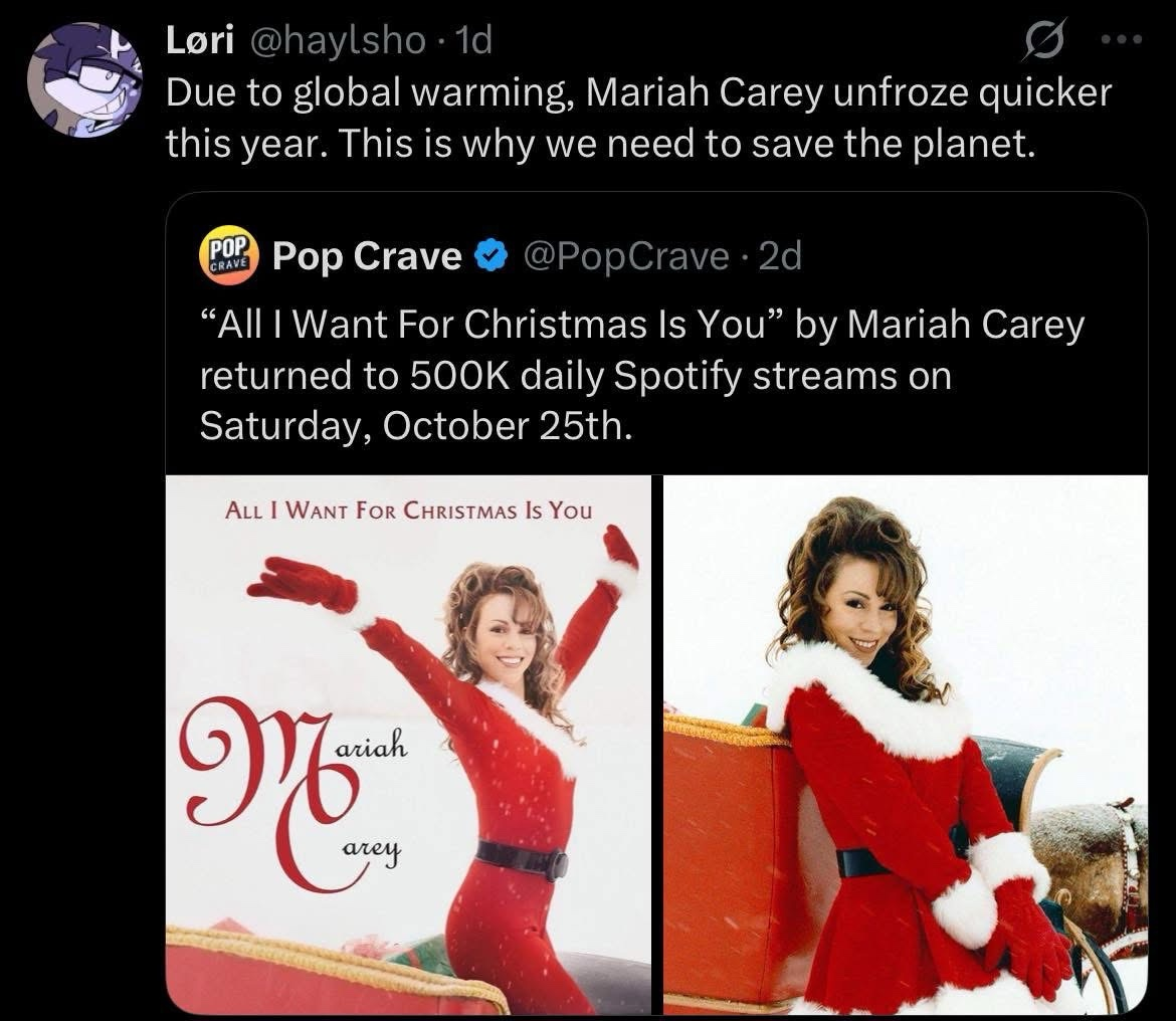 I hope I don't sound too doomy but I'm at the point where I believe the only action an individual can take to address climate change meaningfully is Luigi.