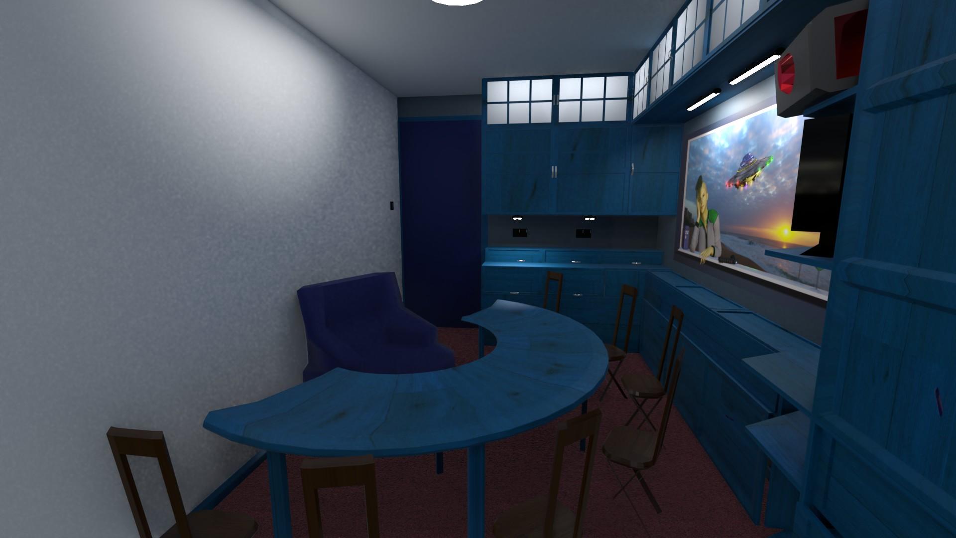This semi-circle table curve of wood and attachable table-legs and fold-able stools might just fit, like, under the bed normally?