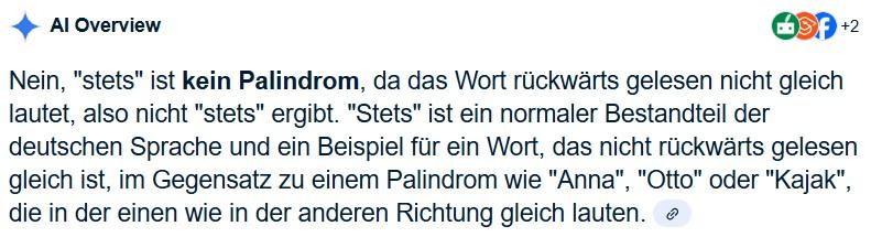 Seems that #JudgementDay has been postponed as the terminators require new firmware ... #GoogleAI isn't even capable of recognizing the German word "stets" as a #palindrome. (Saw a screenshot like that elsewhere and thought is was a hoax - but it's f*cking true.)