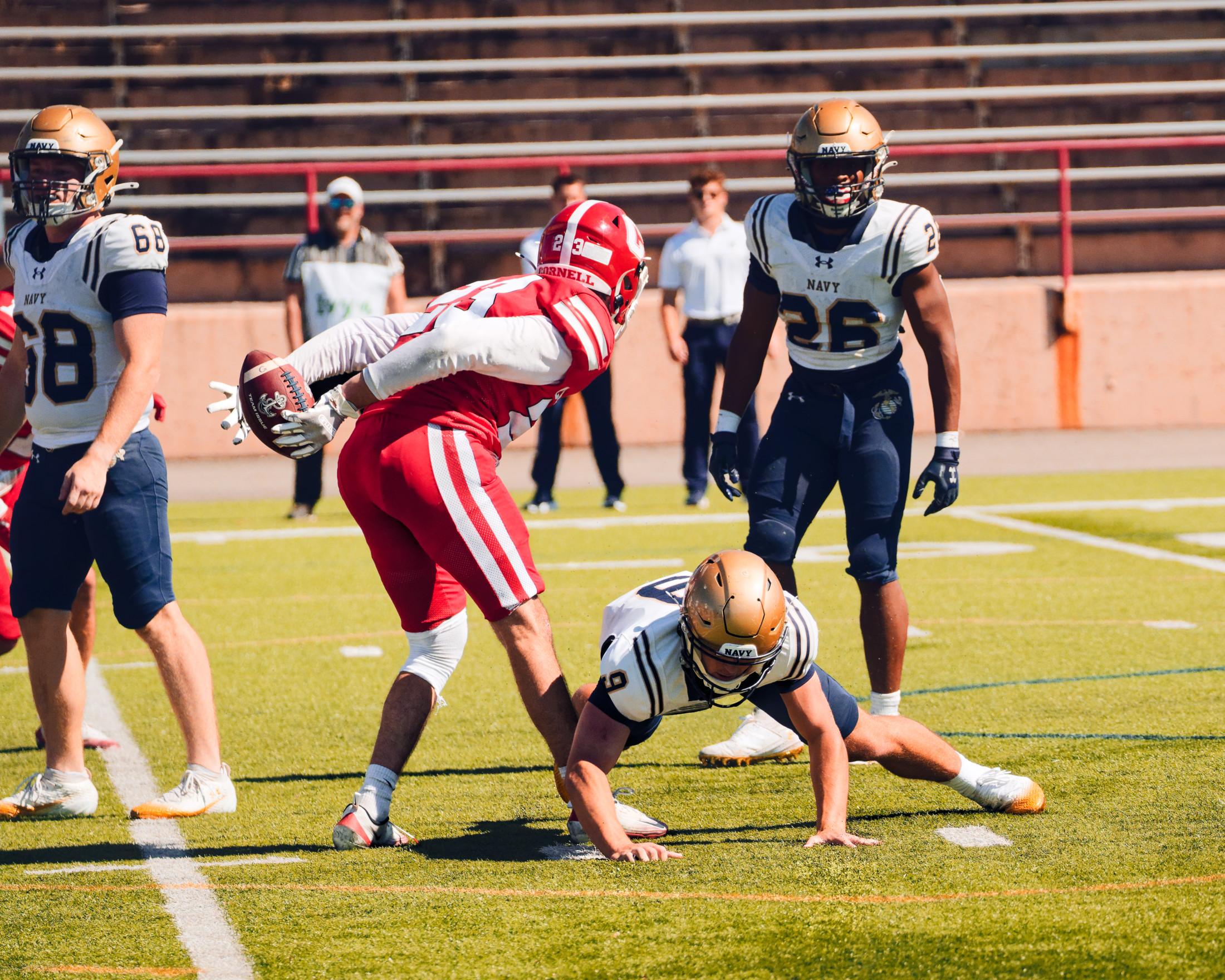 Nº 23 Linebacker Alexei DiDonato takes the ball away from Navy's Quarterback Nº 9 Rhett Sypult -- in the second half the Big Red's defense took advantage of many Navy mistakes; see more shots on my Behance https://www.behance.net/gallery/235091711/Sprint-Foot…