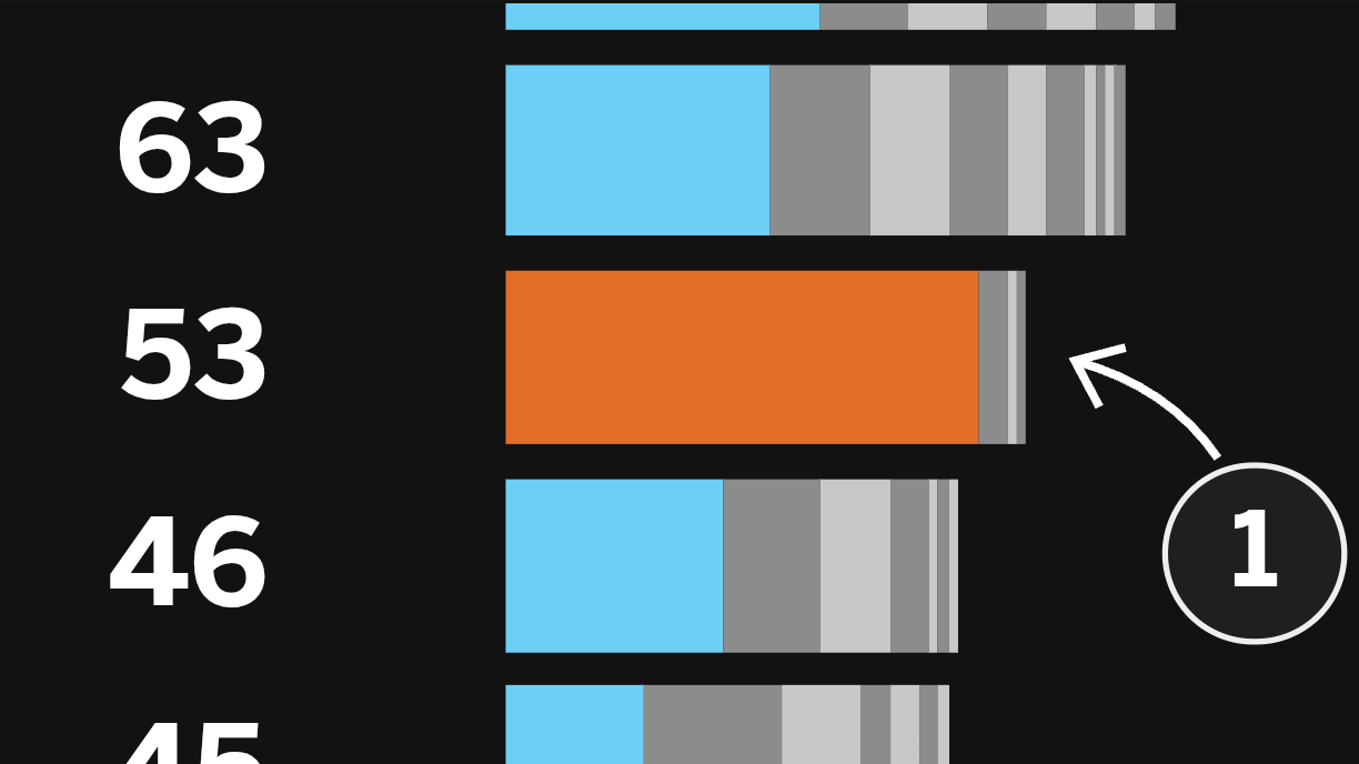 Jammer dat de lijst in absolute cijfers is en niet in procenten. Dat had het veel zichtbaarder gemaakt.