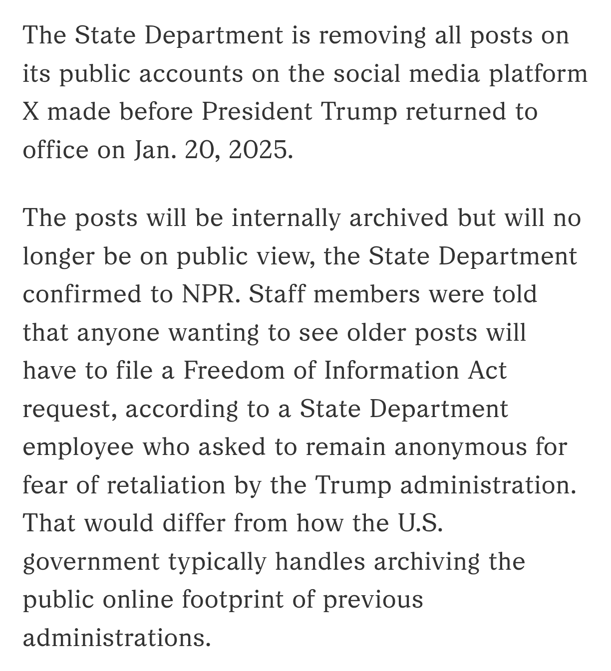 State Department will delete all pre-Trump X posts : NPR