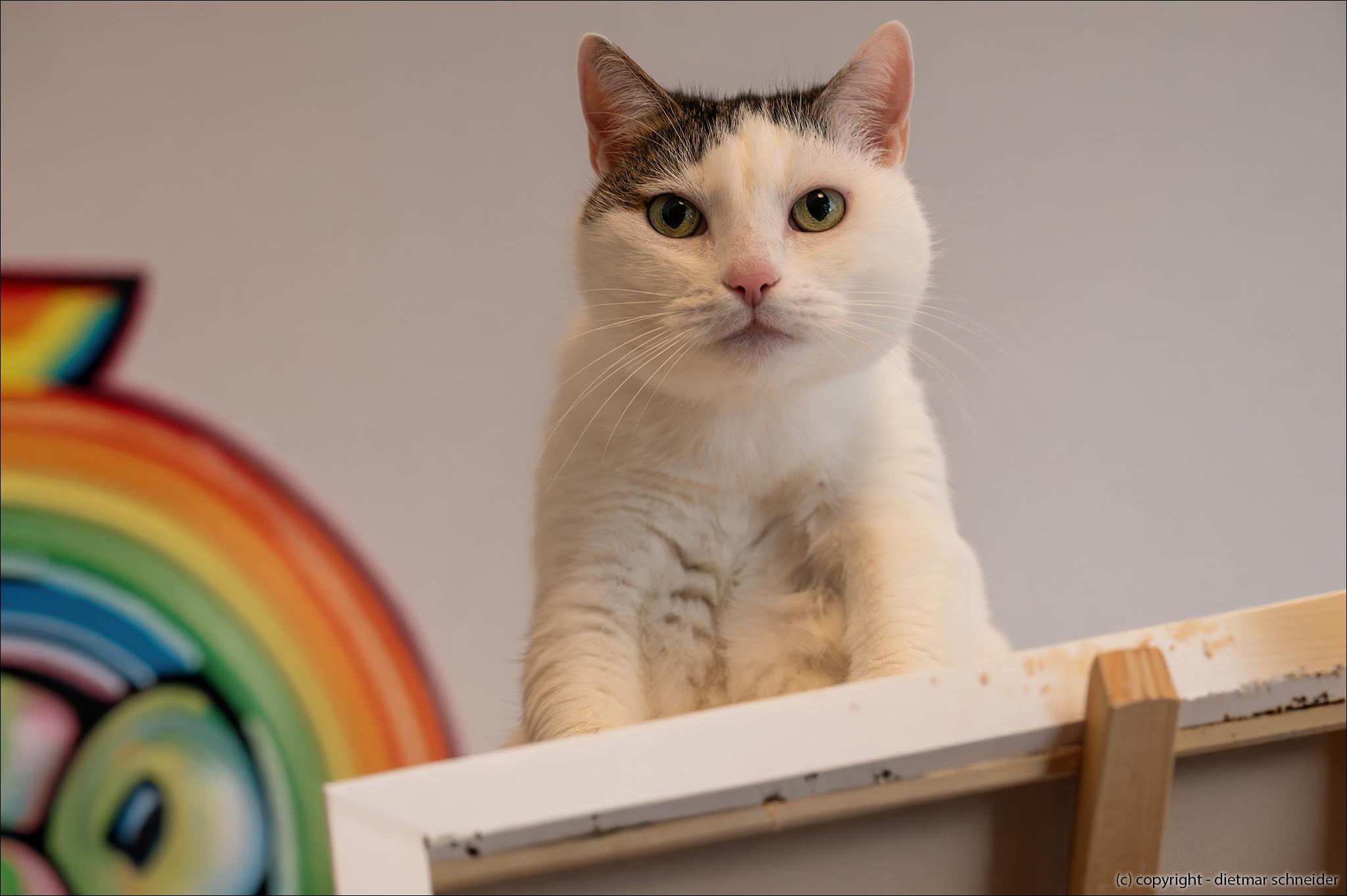 Ich wollte Zeugs wegräumen, aber Uschi hat sich draufgesetzt und gibt mir diesen Blick, der sagt: "Das bleibt jetzt so – frag nicht!" 🙂