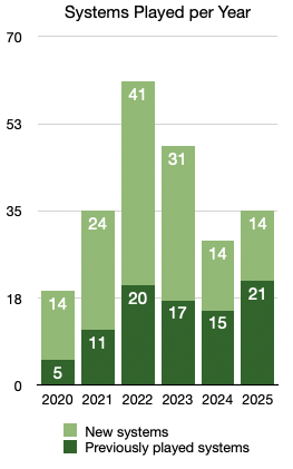 In the last, guttering hours of the year, it’s tradition to look back on the last 12 months’ #TTRPG activity and reflect. You can read last year’s summary at https://dice.camp/@davej/113747664699824381…