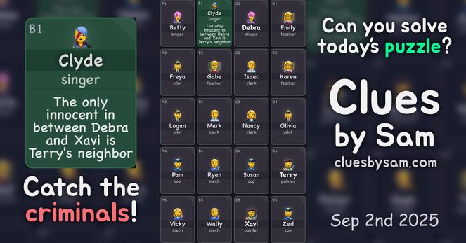 I solved the daily Clues by Sam (Sep 7th 2025) in less than 16 minutes
